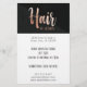 A modern, stylish hair stylist flyer with modern hand lettering style brush typography in faux rose gold foil on a trendy and elegant dark black distressed paper background. Perfect for hair stylists, hairstylists, hair dressers, salons and more.