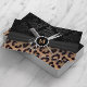 Modern Monogram Leopard Print Hair Stylist Business Cards.