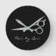 Hair Stylist Silver Black Scissors Personalized Round Clock