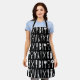 Black and White Hair Dresser apron showing tools of the trade like a comb, blow dryer, straighteners and hair pins