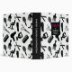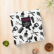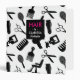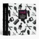 A chic hair stylist binder in black, white, and magenta with a silhouette pattern of hair stylist tools. Great as a style portfolio.