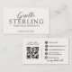 A sleek and modern business card design crafted for hair stylists and salon professionals. Featuring elegant script typography on a crisp white background, this design includes a built-in QR code for instant access to booking or portfolio links. Perfect for hairstylists who want to highlight their creativity and professionalism with a clean, stylish, and functional card.