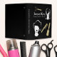 Now you're able to make your client's appointments with a beautiful black binder. Two white silhouette lady model heads on front with gold styling tools: scissors, comb and brush on a black background and includes a spine title.