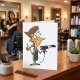 A hairdresser with scissors and a hair dryer. This design looks really effective on these Greeting Card