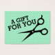 A retro, modern and fun business card gift certificate with the words "gift certificate" in a large, loud print with a pair of scissors/shears on a mint green polkadot background. Perfect for hair stylists, hairstylists, hair dressers, cosmetologists, cosmetology, salons, spas and more!