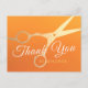 Hair Salon / Hairstylist / Hairdresser / Beauty Salon / Makeup Artists / Stylists / Wedding Planners / event Planners / consultants / boutique owners / fashionistas Thank You Postcard Templates - Modern Faux Gold Scissors on Orange Gradient Background.