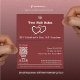 On the back, the left side includes a "Scan and Arrange!" CTA, a QR code for easy appointment scheduling, a tracking ID: Love25, and an invitation to “Follow” the salon’s social media handle and Valentine's Hashtag. To the right, the physical contact details.