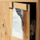 This kitchen towel, or tea towel, presents the male Hairy Woodpecker (Leuconotopicus villosus). This striking bird has black and white feathers and a red patch on the back of his head. He is often confused with the Downy Woodpecker but he is larger with a much longer beak. Here he is on a suet feeder against a lovely blue sky.