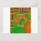 This stylized piece features a bright green giraffe head and neck centrally positioned against a large, decorated orange African pot. An orange shape resembling an elephant's trunk extends from the right side, adding an element of fun and surprise. The background is divided into rectangles of orange, purple, and green, creating a lively patchwork effect. The phrase "HAKUNA MATATA" is prominently displayed in a stylized font, with "Hakuna" above the giraffe's head and "Matata" below.