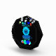 The color palette is vibrant and lively, utilizing contrasting colors against the black background: