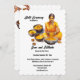 Celebrate the bride to be or the bridal couple with this generativecontent watercolor Indian woman wearing an orange yellow colored sari. She is sitting cross legged behind a bowl filled with turmeric powder and next to smaller bowls filled with the same spice. Invite friends and family to share their blessings, protection and purfication of the bride and groom prior to their wedding day. Black templates for your custom wording appear on the stark white background and a further one on the back for additional information that your guests may require. If no extra detail is needed, siimply delete the wording on the back. This striking graphic design is ideal to celebrate Mehndi; Mehendi; Sangeet or any ethnic Asian celebration in favour of a bridal couple.