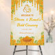 Designed especially for Indian pre-wedding festivities, this board features a bright and joyful combination of yellow and orange garlands and floral, symbolizing auspicious beginnings and festive cheer. Traditional yet modern, it includes elegant fonts and space for the couple’s names and event details. Perfect for setting the tone for your Haldi celebration, this welcome sign adds a warm and festive charm to your décor.