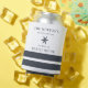 Nautical can cooler features a coastal style starfish and stripes design. Personalize the custom text with a family last name and beach house (or other title) with the year established and location. Hale navy blue and white color scheme.