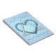 Beautiful, versatile, personalized spiral notebook features an original digital painting by Leslie Sigal Javorek of a highly stylized Star of David created from an interlocking heart & triangle made of diamonds & sapphires. The title "Halevei" (Yiddish for "What If..."), subtitle "My Dreams & Wishes", and name at bottom are customizable else clear fields.