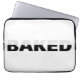 A visual play on the words half baked. Laptop case for a cook or chef maybe. Laptop cover with a play on words. Chef gift. Graphics that show half of the word "BAKED".