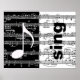 Black and white music inspired decor idea. White musical note and the word SING. A nice suggestion to decor the music-space