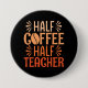 Funny coffee design for the teacher who loves their coffee, features a coffee bean and text that reads Half Coffee Half Teacher! Teacher coffee design mugs, stickers, bags, pillows, T-shirts, and more!