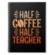 Funny coffee design for the teacher who loves their coffee, features a coffee bean and text that reads Half Coffee Half Teacher! Teacher coffee design mugs, stickers, bags, pillows, T-shirts, and more!