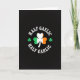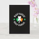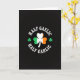 This card features a deep black background with a large three-leaf shamrock centered like a shared emblem between friends 💚. Each leaf is split into the Irish flag colors—green on the left, white in the middle, and orange on the right—so the clover reads like a tiny banner. Curved above the shamrock, white capital letters spell “HALF GAELIC,” and curved below it, matching white capitals read “HALF GARLIC,” turning the design into an inside joke you’d grin at together ☘️. Two smaller solid-green shamrocks sit to the left and right of the main clover, like little companions keeping it company. The high contrast makes the lettering easy to spot at a glance, while the simple layout keeps the focus on that clever wordplay. The centered clover and mirrored text arcs create a balanced look, like two halves meeting in the middle. The green, white, and orange segments are crisp and evenly divided within the main shamrock, with the smaller shamrocks aligned at its midline.
