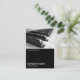 A business card template design with a white edged black lower half. The front design includes a photo or artwork in the top half. The same theme is repeated on the back without the image, allowing room for other details and further customization. The three squares motif used as a decorative feature on the back is from one of Zazzle's useful picture fonts and can be used as a decorative feature or replaced with your own logo or decoration.