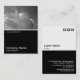 A business card template design with a white edged black lower half. The front design includes a photo or artwork in the top half. The same theme is repeated on the back without the image, allowing room for other details and further customization. The three squares motif used as a decorative feature on the back is from one of Zazzle's useful picture fonts and can be used as a decorative feature or replaced with your own logo or decoration.