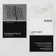 A business card template design with a white edged black lower half. The front design includes a photo or artwork in the top half. The same theme is repeated on the back without the image, allowing room for other details and further customization. The three squares motif used as a decorative feature on the back is from one of Zazzle's useful picture fonts and can be used as a decorative feature or replaced with your own logo or decoration.