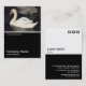 A business card template design with a white edged black lower half. The front design includes a photo or artwork in the top half. The same theme is repeated on the back without the image, allowing room for other details and further customization. The three squares motif used as a decorative feature on the back is from one of Zazzle's useful picture fonts and can be used as a decorative feature or replaced with your own logo or decoration.