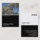 A business card template design with a white edged black lower half. The front design includes a photo or artwork in the top half. The same theme is repeated on the back without the image, allowing room for other details and further customization. The three squares motif used as a decorative feature on the back is from one of Zazzle's useful picture fonts and can be used as a decorative feature or replaced with your own logo or decoration.