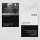 A business card template design with a white edged black lower half. The front design includes a photo or artwork in the top half. The same theme is repeated on the back without the image, allowing room for other details and further customization. The three squares motif used as a decorative feature on the back is from one of Zazzle's useful picture fonts and can be used as a decorative feature or replaced with your own logo or decoration.