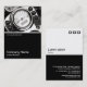 A business card template design with a white edged black lower half. The front design includes a photo or artwork in the top half. The same theme is repeated on the back without the image, allowing room for other details and further customization. The three squares motif used as a decorative feature on the back is from one of Zazzle's useful picture fonts and can be used as a decorative feature or replaced with your own logo or decoration.