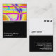 A business card template design with a white edged black lower half. The front design includes a photo or artwork in the top half. The same theme is repeated on the back without the image, allowing room for other details and further customization. The three squares motif used as a decorative feature on the back is from one of Zazzle's useful picture fonts and can be used as a decorative feature or replaced with your own logo or decoration.