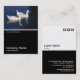 A business card template design with a white edged black lower half. The front design includes a photo or artwork in the top half. The same theme is repeated on the back without the image, allowing room for other details and further customization. The three squares motif used as a decorative feature on the back is from one of Zazzle's useful picture fonts and can be used as a decorative feature or replaced with your own logo or decoration.