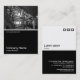 A business card template design with a white edged black lower half. The front design includes a photo or artwork in the top half. The same theme is repeated on the back without the image, allowing room for other details and further customization. The three squares motif used as a decorative feature on the back is from one of Zazzle's useful picture fonts and can be used as a decorative feature or replaced with your own logo or decoration.