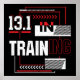13.1 in Training - 13.1 miles half-marathon running gear. Modern art for men or women half marathon runner. Bold lines and chevron arrows make an abstract inspirational image. > Red, white and black cutout lettering, typography word art for training to run a half marathon race. > Personalize it! Add custom name, photo, or text.