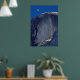 This photo features a half moon rising over Half Dome in Yosemite National Park.