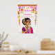 Half Saree ceremony cute Indian girl in traditional clothes cartoon with golden bells and cerise tassel garlands Ganehsha welcome sign poster instant download