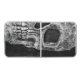 Macabre Gothic black and white grunge texture print. Half skull head extreme close up ping pong table. Creepy, evil, sinister. One of a kind, personalized text. Cool, trendy, unique, modern, scary Halloween style design. Image copyright Marg Seregelyi Photography.