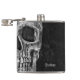 Gothic macabre black and white design. Cool grunge printed texture half skull head flask. Spooky, modern, unique, creepy, evil, sinister. Customize your name and Goth script. Trendy, scary Halloween style. Image copyright Marg Seregelyi Photography.