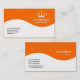 A business card with a bold wave design. Company name and business type or slogan in the header along with a decorative crown logo/symbol, which can be used as a decorative feature or replaced with your own logo. Address details on the front. Name and other details on the back. Suitable for many types of business.