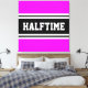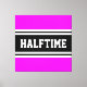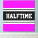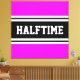 This sporty, athletic design features bold HALFTIME text inside a highlighted wide black stripe with double white racing stripes against bright tropical pink background. The text in this design can be personalized.
