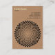 A business card template with circular halftone pattern design. Company name, business type and address on the front with name, job title, telephony, web and email addresses on the back, with the same layout.
