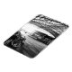 The black and white urban image of Halle Train Station in Flemish Brabant, Belgium captures the timeless beauty of the modern architecture, with light and shadow creating a dramatic interplay. The parked bicycle and the wheels of vehicles add a sense of movement to the stillness of the scene, while the monochrome palette enhances the moody atmosphere and urban charm. Modern Street photography and a great souvenir magnet.