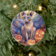 Halloween Abyssinian Cat With Pumpkins Scary Ceramic Ornament
