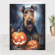 Halloween Airedale With Pumpkins Scary Card