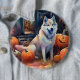 Halloween Alaskan Malamute With Pumpkins Scary Button