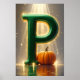 Designed with glowing golden tones, sparkling textures, and a bold letter P paired with a pumpkin motif, this artwork creates strong visual appeal while keeping letters clear and easy to recognize. Customization is available for names, letters, and personalized variations. If you would like a custom version, please send a message and we will be happy to create something special for you.