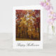 Halloween fall foliage greeting card, with a script typography design and an orange and red nature scene photo. With black lettering, you can customize with your own text. A lovely way to say Happy Halloween to your friends and family.