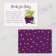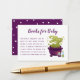 Cute halloween theme baby shower book request card featuring illustration of a purple cauldron with green smoke and witch's potions. This card asks guests to bring books instead of a card. Send this with the invitation card. Perfect for a baby shower in October.