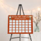 Halloween baby shower game of guessing the arrival of the baby. Personalize it with a name and write the potential due date on the calendar for your guests to take a guess. Design in orange with spider web, and two spooky cute doll illustrations.