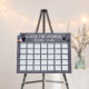Halloween baby shower game of guessing the arrival of the baby. Personalize it with a name and write the potential due date on the calendar for your guests to take a guess. Design in gray with a spider web, and cute ghost, skeleton, and pumpkin illustrations.